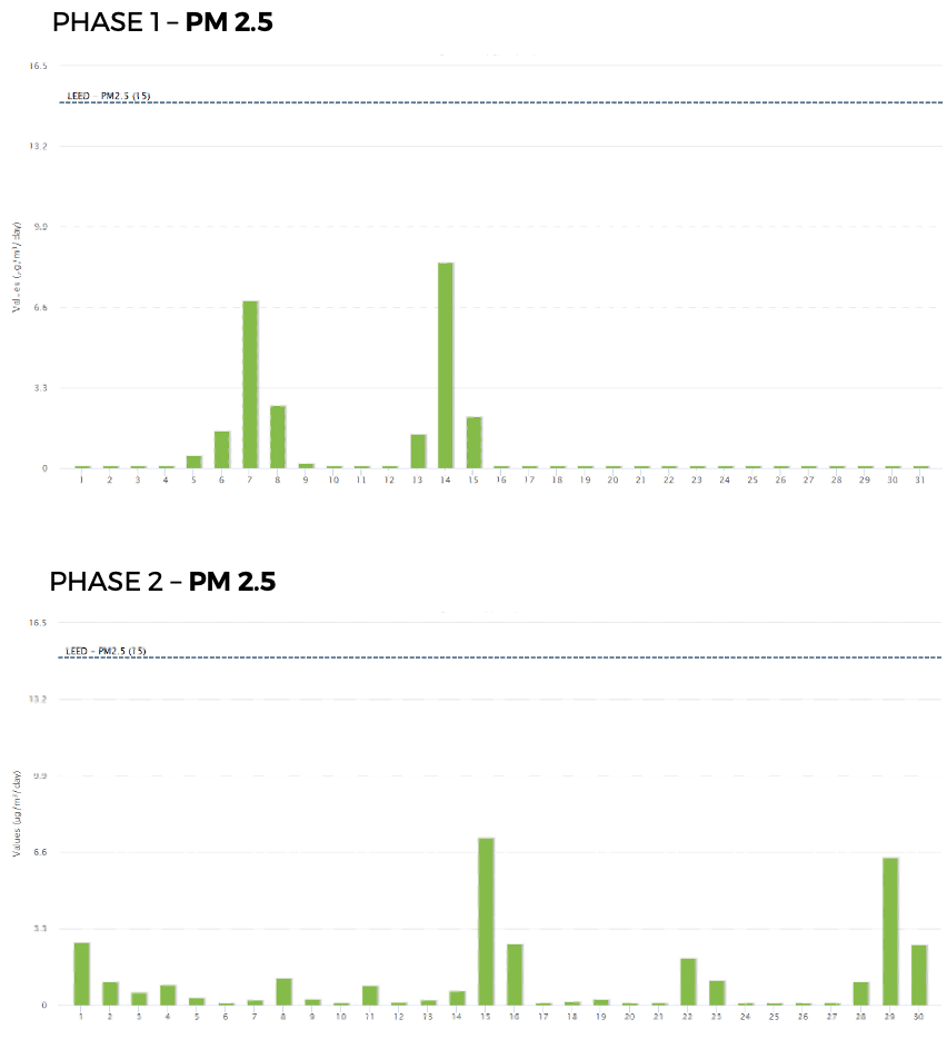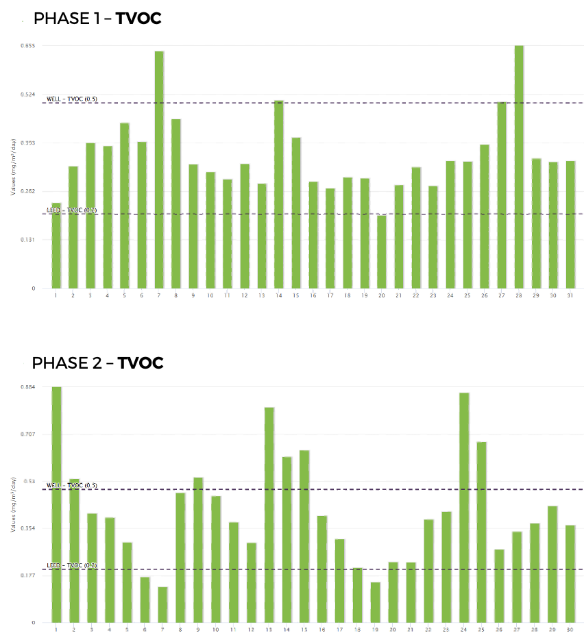 The project included continuous monitoring of indoor air quality to support a healthy and comfortable environment for the store’s staff and customers. BEE Sense tracked important factors like CO₂ levels, PM2.5, total volatile organic compounds (TVOC), and even virus presence during the same two monitoring phases.