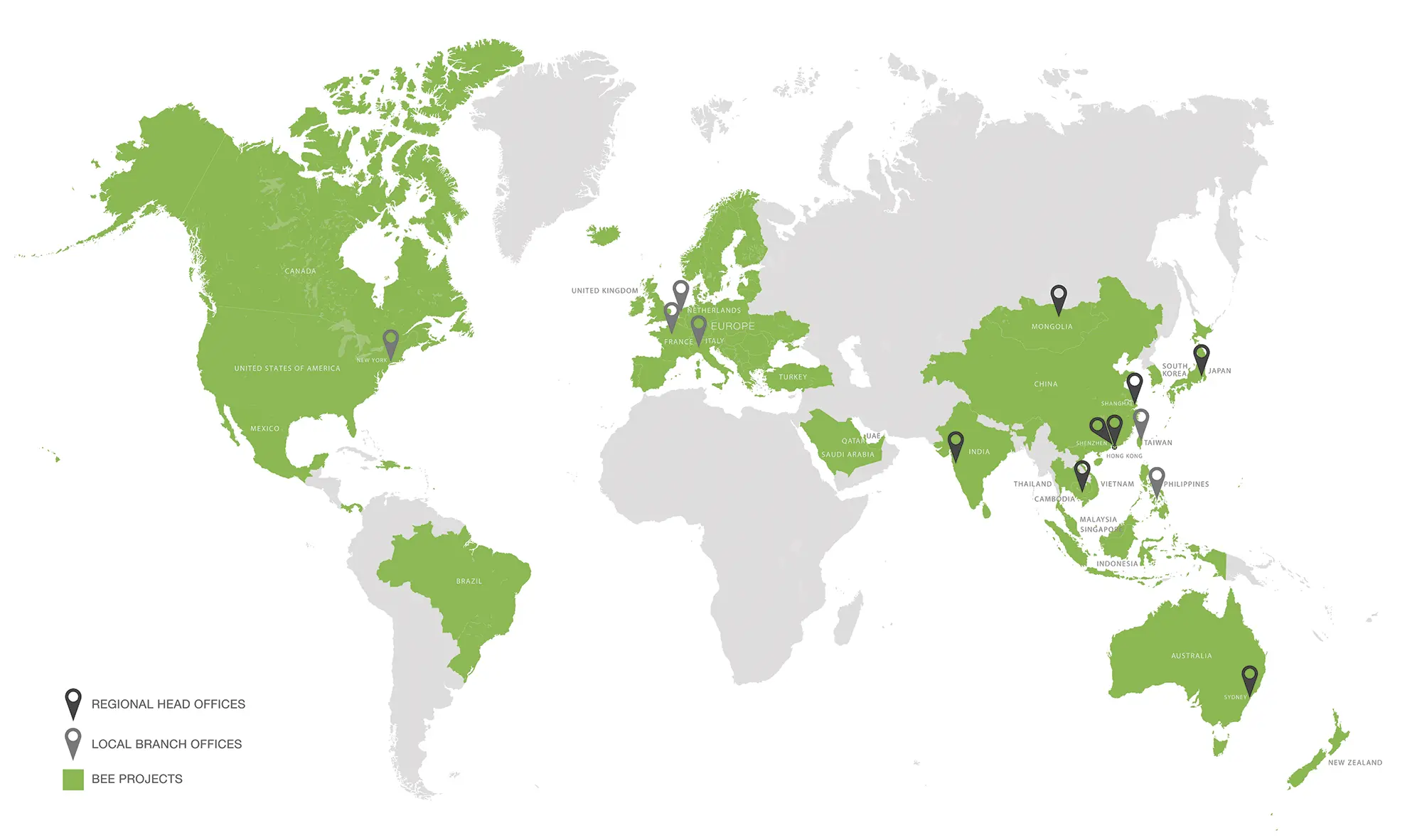 BEE ត្រូវបានចាប់ផ្តើមជា “សហគ្រាសបរិស្ថាន Bisagni” ក្នុងឆ្នាំ 2009 នៅទីក្រុងសៀងហៃ។ ចាប់តាំងពីពេលនោះមក យើងបានមានវត្តមានជាសាកល និងការបោះជំហានគម្រោងដែលលាតសន្ធឹងជុំវិញពិភពលោក។ សម្រាប់ព័ត៌មានបន្ថែមសូមមើលគម្រោងរបស់យើង។