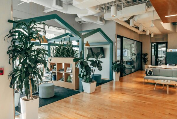 - Biophilic elements such as indoor greenery and algae-based carbon absorption technology