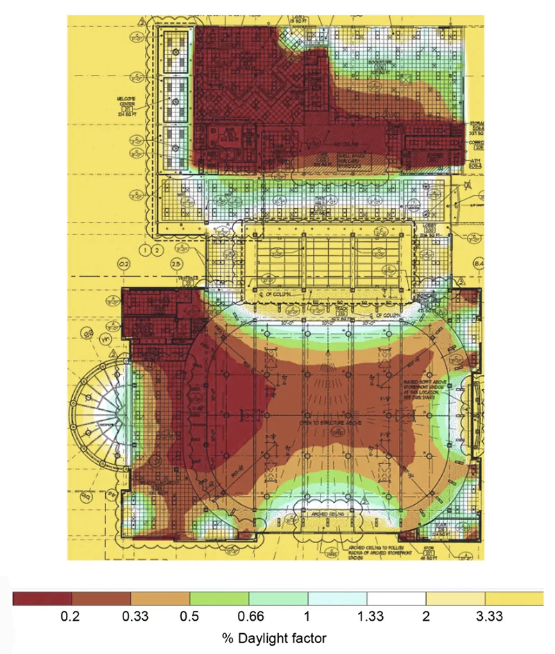 The team subsequently completed an artificial lighting simulation of the LED’s to ensure that the new lights would emit the same (or better) light levels then before – ensuring that no disruption to the students or staff would occur. At the completion of our simulations we were able to save the university thousands of dollars from the retrofit, which itself will save the university over 1 million USD over 10 year.
